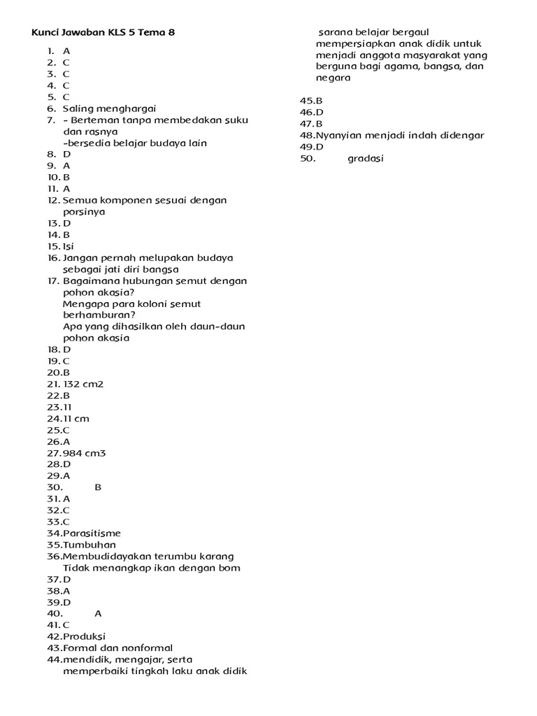Download soal tema 8 kelas 5 sd mi tentang lingkungan sahabat kita dan kunci jawaban kurikulum 2013 revisi. Soal dan kunci jawaban pengayaan uas matematika smp semester. Gambar diatas adalah kenampakan alam yang sangat indah, yaitu berupa hutan alam beserta mata. Kunci jawaban tematik 9 kelas 5 halaman 36. Jawaban buku tematik edisi revisi 2018 kelas 5 tema 8. Kunci jawaban buku tematik tema 8 kelas 5 sd ini ditujukan kepada orang tua atau wali sebagai pedoman dalam mengoreksi hasil belajar anak. Terjawab • terverifikasi oleh ahli. Lingkaran ayo berlatih halaman 37 belajar kurikulum 2013. Kunci jawaban tematik kelas 5 tema 8 subtema 1 pembelajaran 5. Buku tematik sd kelas 6 tema 1 selamatkan makhluk hidup k13 revisi 2018. Sebelum melihat kunci jawaban, siswa harus terlebih dahulu menjawab soal sendiri. Kunci jawaban buku siswa kelas 5 tema 8 kurikulum 2013 sanjayaops. Dengan adanya pembahasan kunci jawaban soal yang terdapat pada buku siswa seperti ini diharapkan dapat.