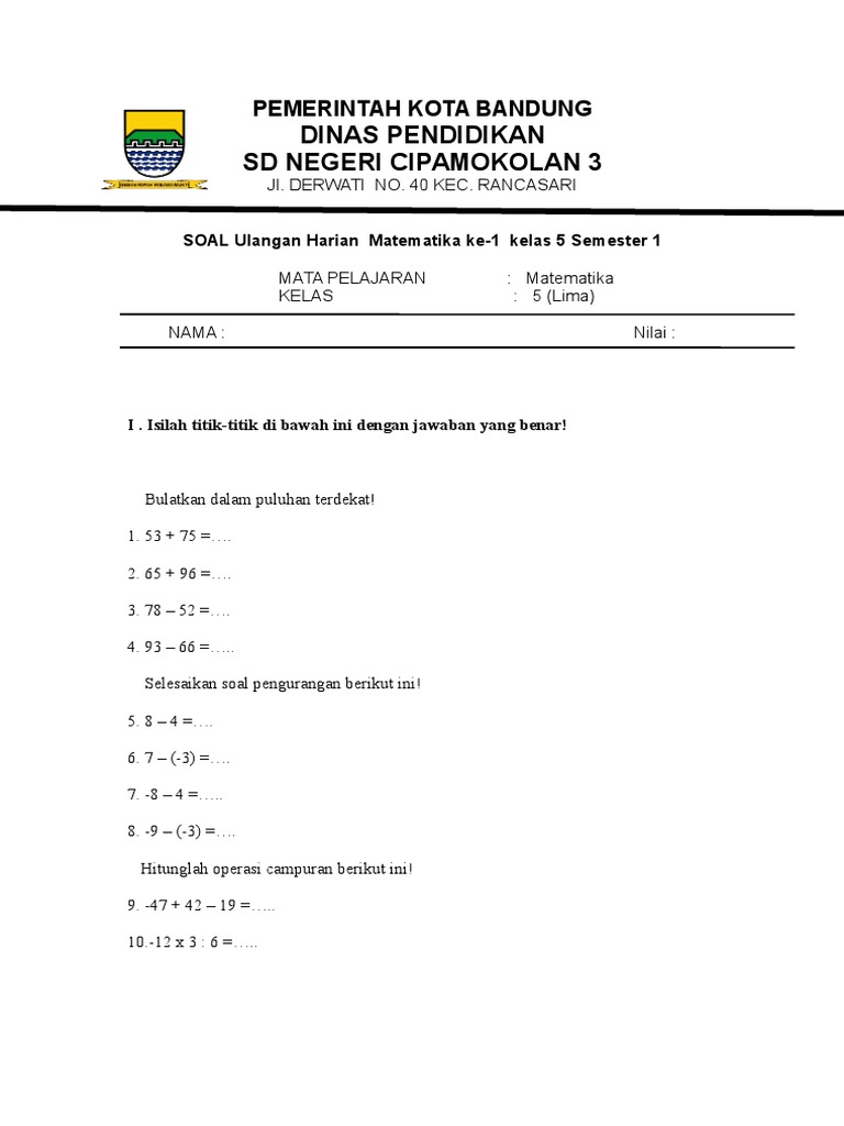Soal Ulangan Kelas 5 Semester 2 Matematika : Download soal Ukk Tema 5 Kelas 1 Sd Semester 2 - TRIBUN DESA / Rancasari soal ukk kelas 5 semester 2 nama :. Soal pas matematika kelas 5 dan soal pas b. Pemerintah kota bandung dinas pendidikan sd negeri derwati jl. Berilah tanda silang (x) pada huruf a, b, c atau d pada jawaban. Bangun datar dan bangun ruang. / check spelling or type a new query.